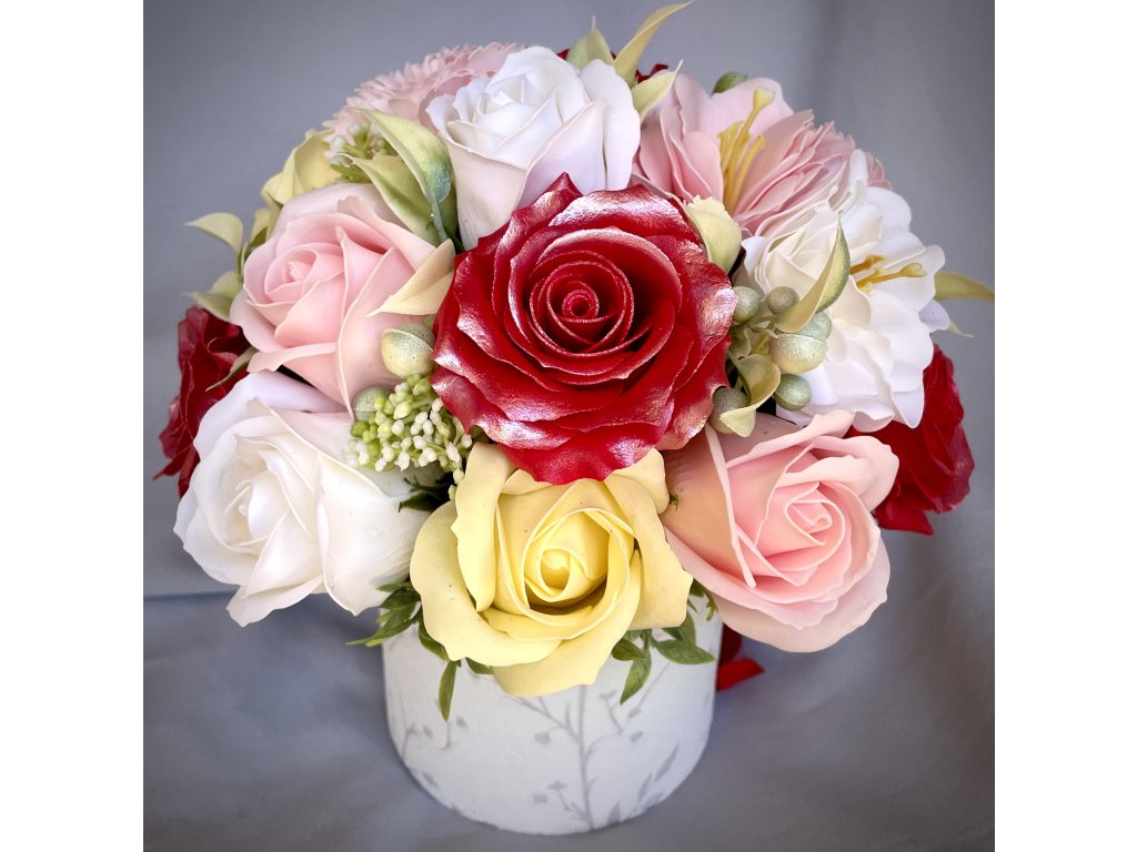Krásne červené Mydlové ruže v kontraste s jemnými žltými.